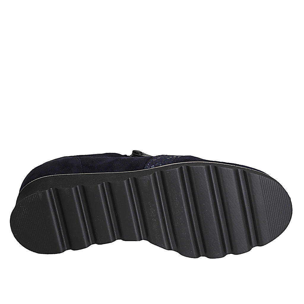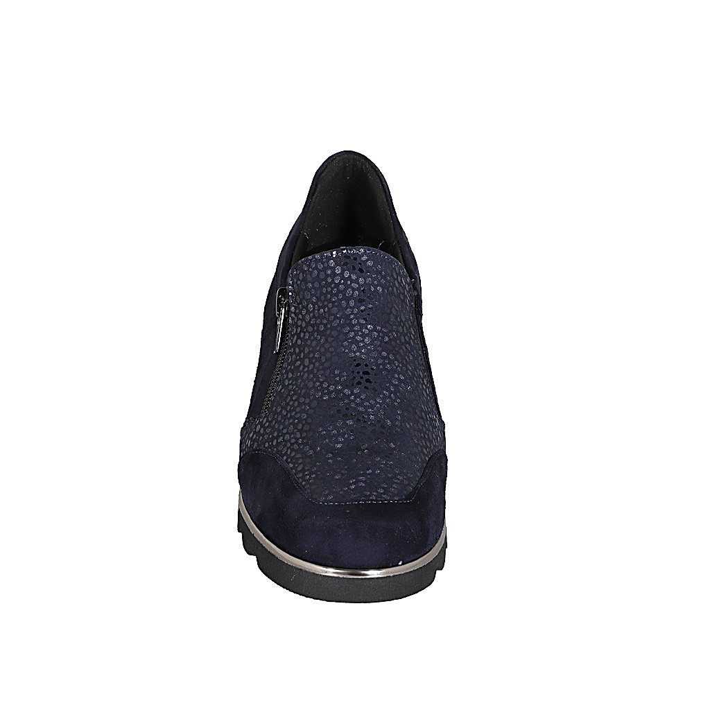 Zapato con cremalleras y plantilla extraible para mujer en gamuza y gamuza estampada laminada azul cuña 3 - Tallas disponibles:  42