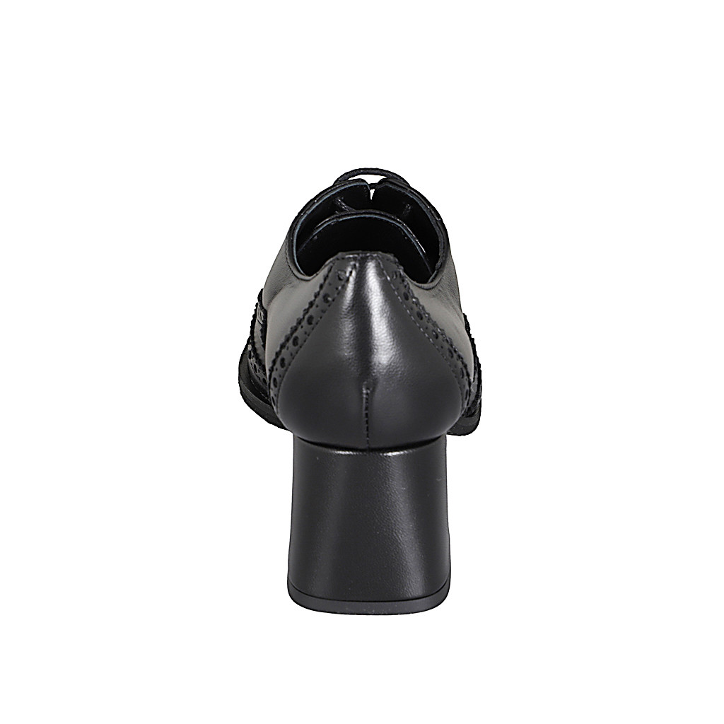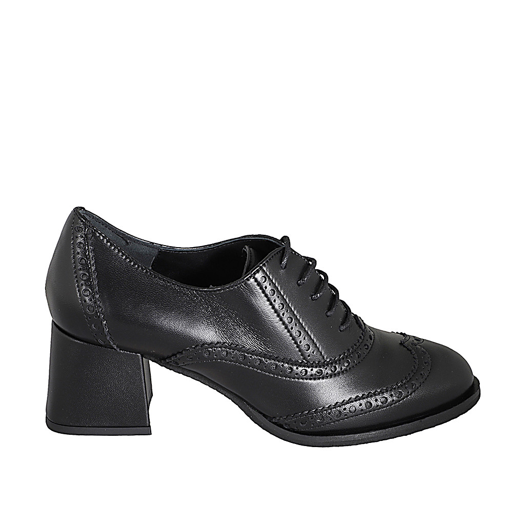 Zapato Oxford con cordones para mujer en piel negra con punta de ala y tacon 5