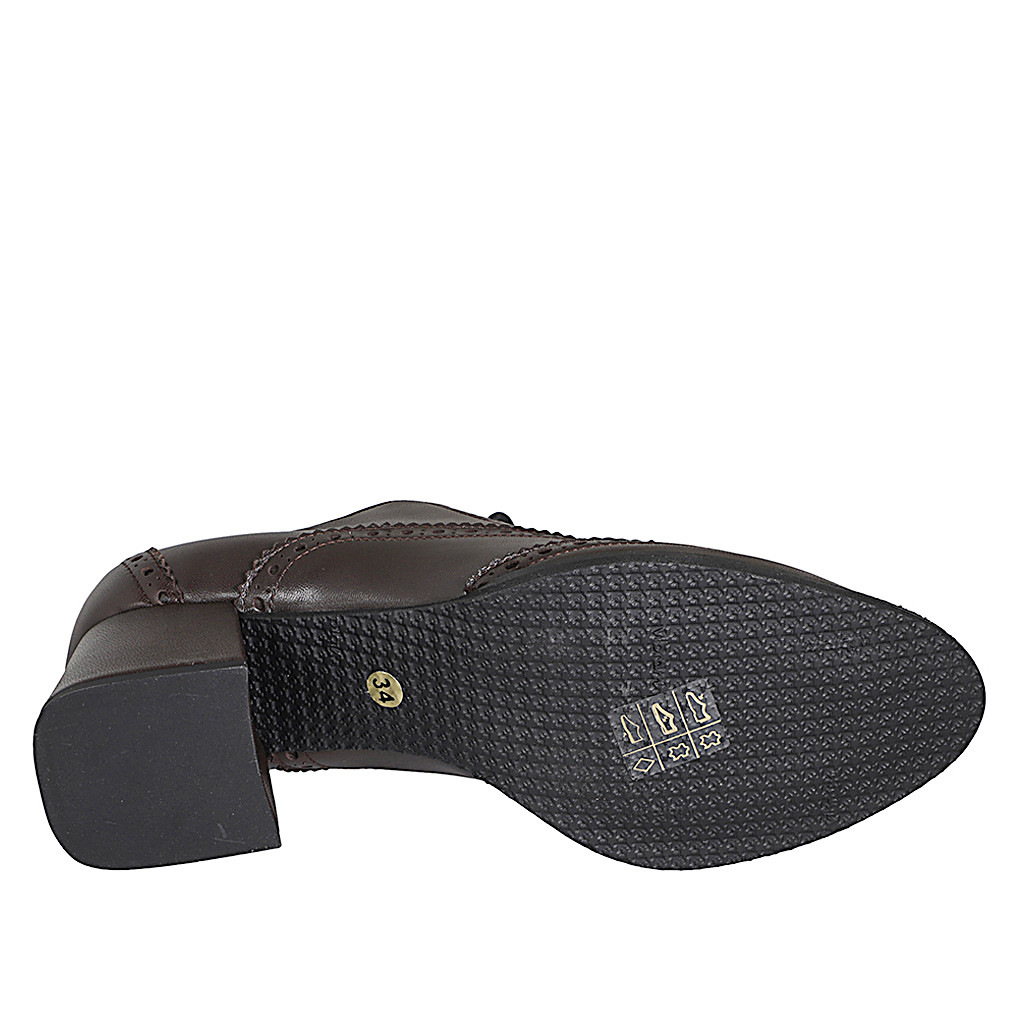Zapato Oxford con cordones para mujer en piel marron con punta de ala y tacon 5