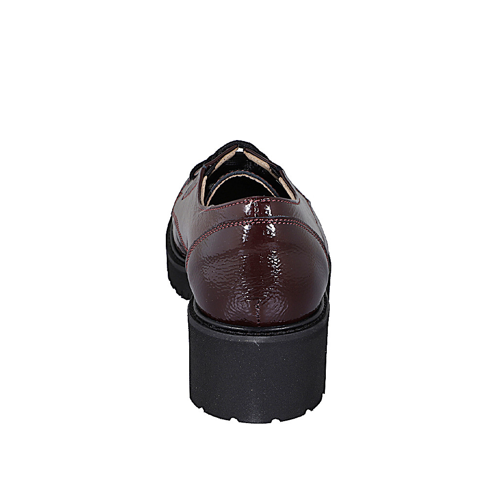 Zapato derby para mujer en charol granate con elasticos tacon 4