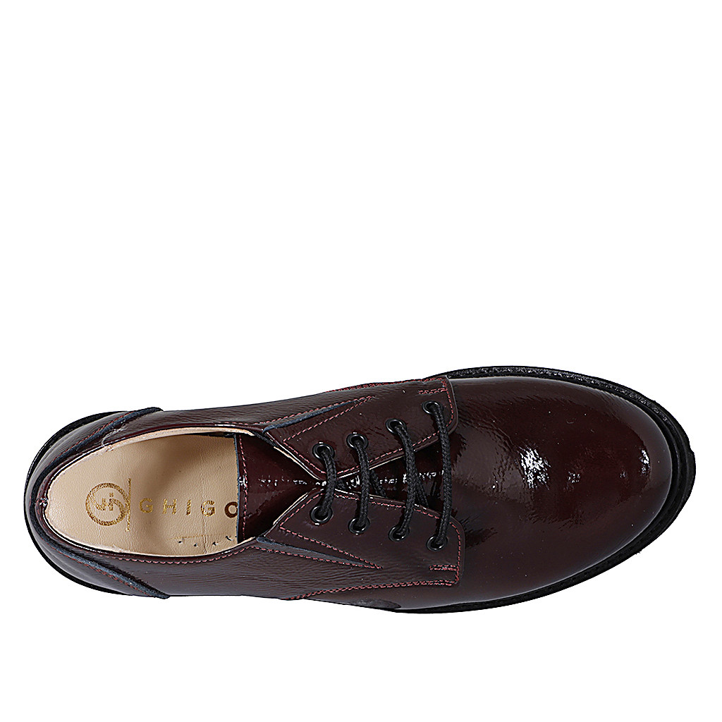 Zapato derby para mujer en charol granate con elasticos tacon 4 - Tallas disponibles:  43, 44, 45