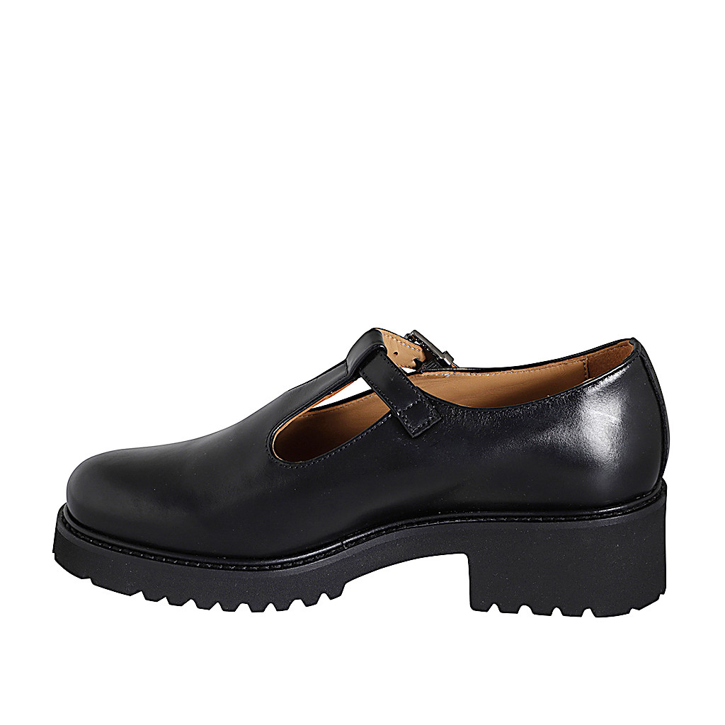 Zapato Mary Jane con cinturon charleston para mujer en piel negra tacon 4
