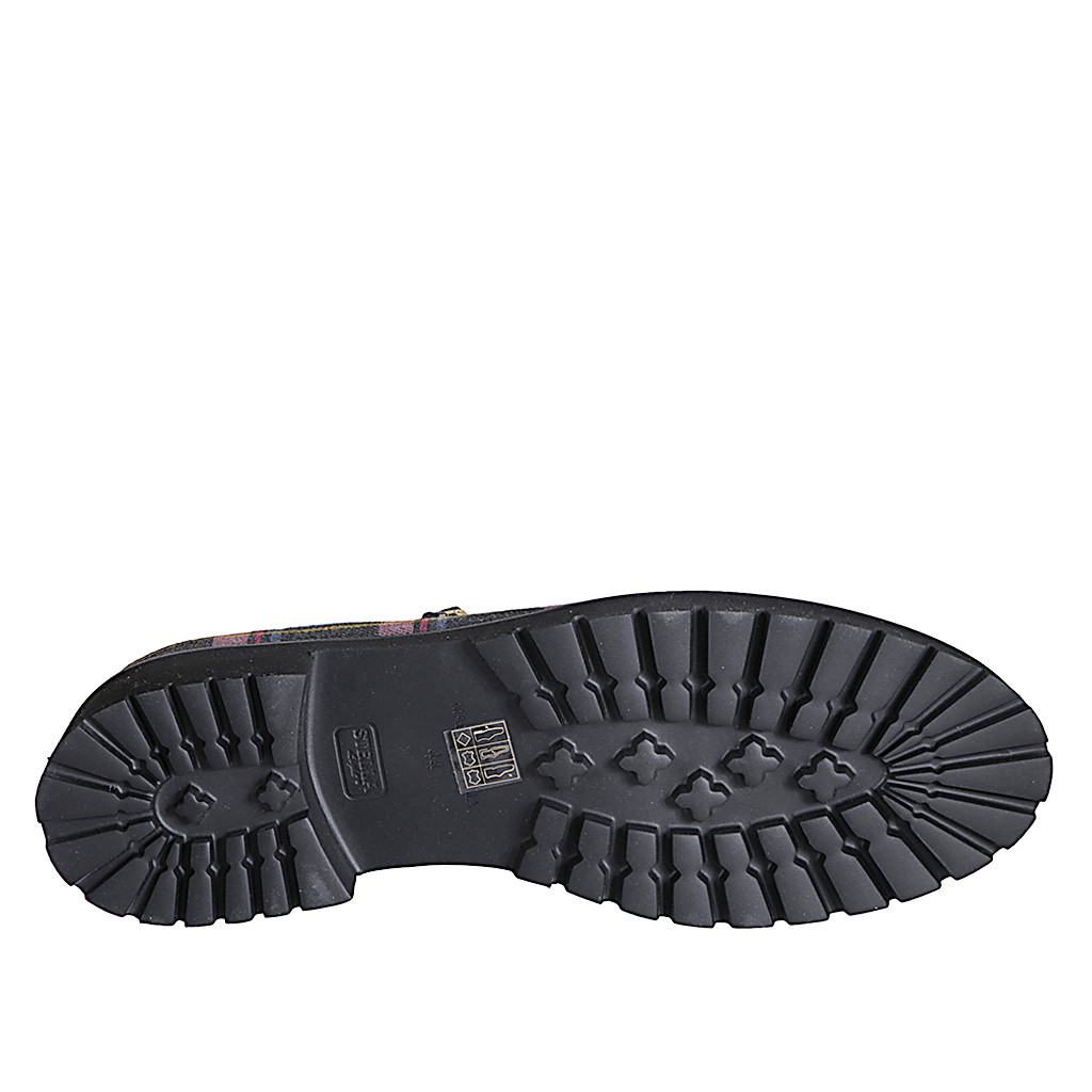 Zapato Mary Jane para mujer con cinturones en tejido de tartan multicolor y charol negro tacon 4 - Tallas disponibles:  45