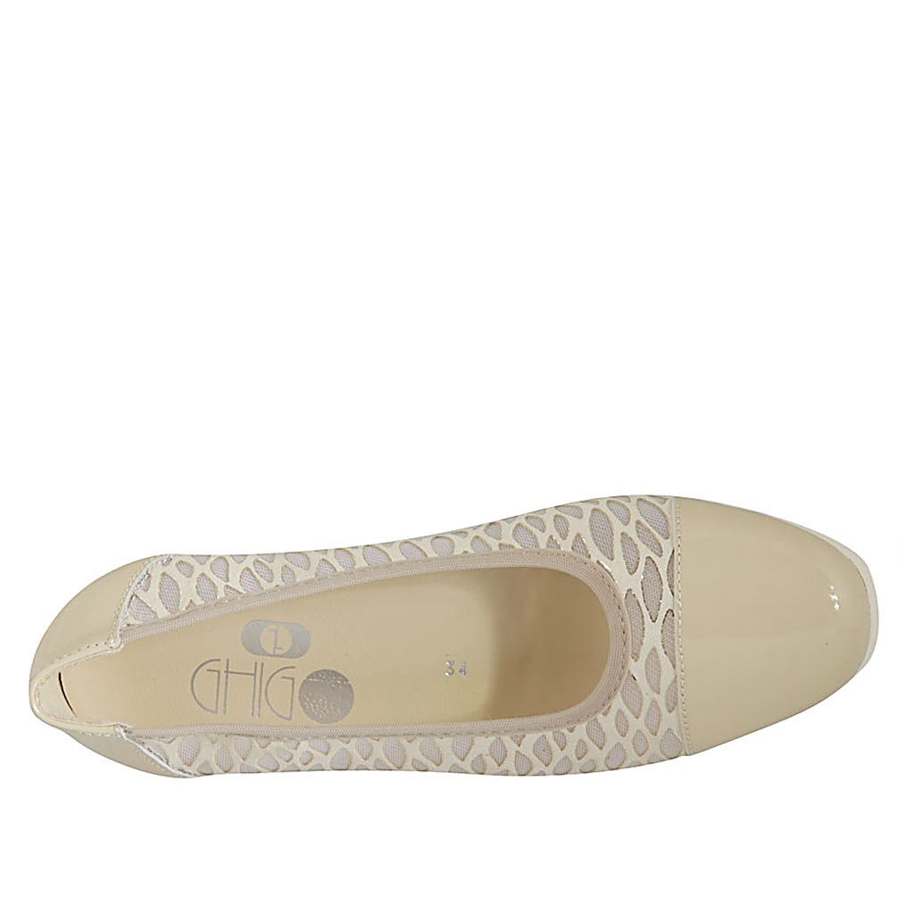 Zapato de salon para mujer en tejido transparente y charol beis con plantilla extraible cuña 5 - Tallas disponibles:  42