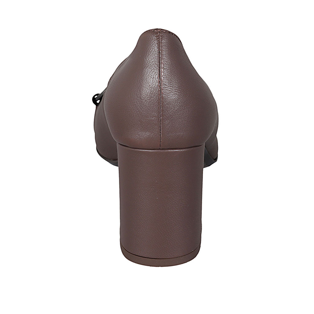 Zapato de salon con accessorio en piel marron gris pardo para mujer tacon 7 - Tallas disponibles:  42