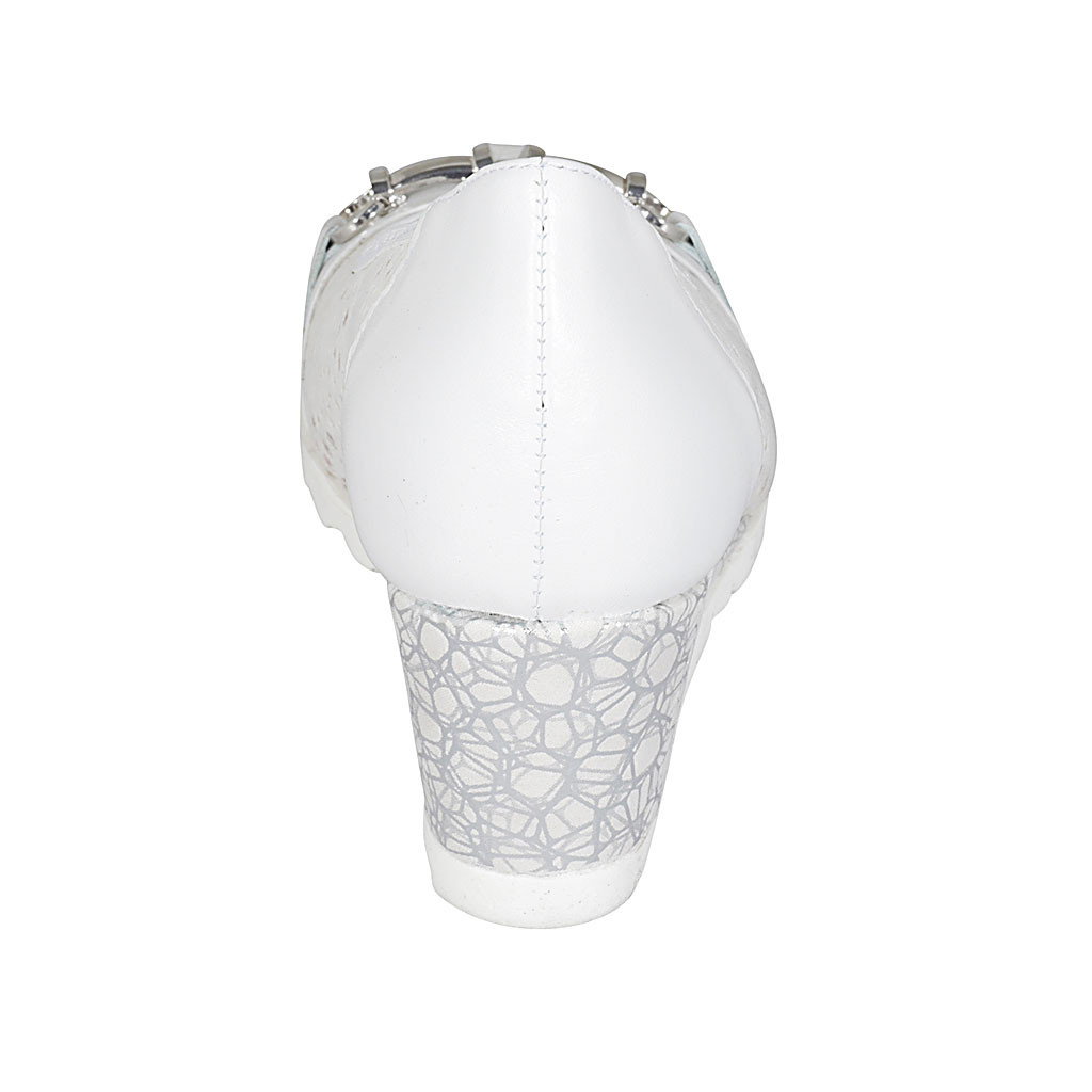 Zapato de salon para mujer en gamuza perforada y piel blanca con accesorio y plantilla extraible cuña 6 - Tallas disponibles:  31, 42