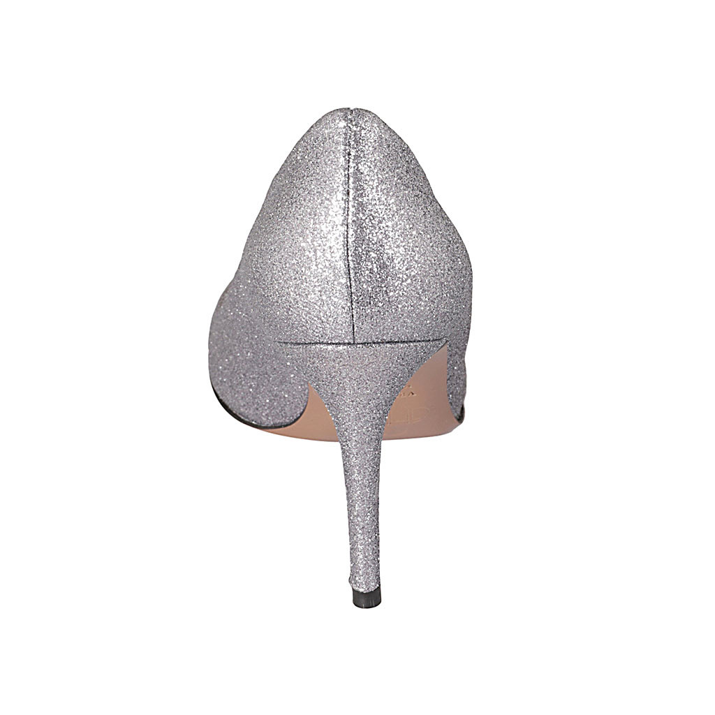 Zapato de salon en piel plateada brillante para mujer tacon 8