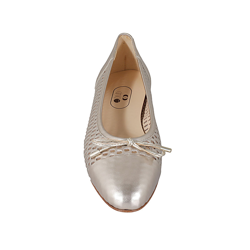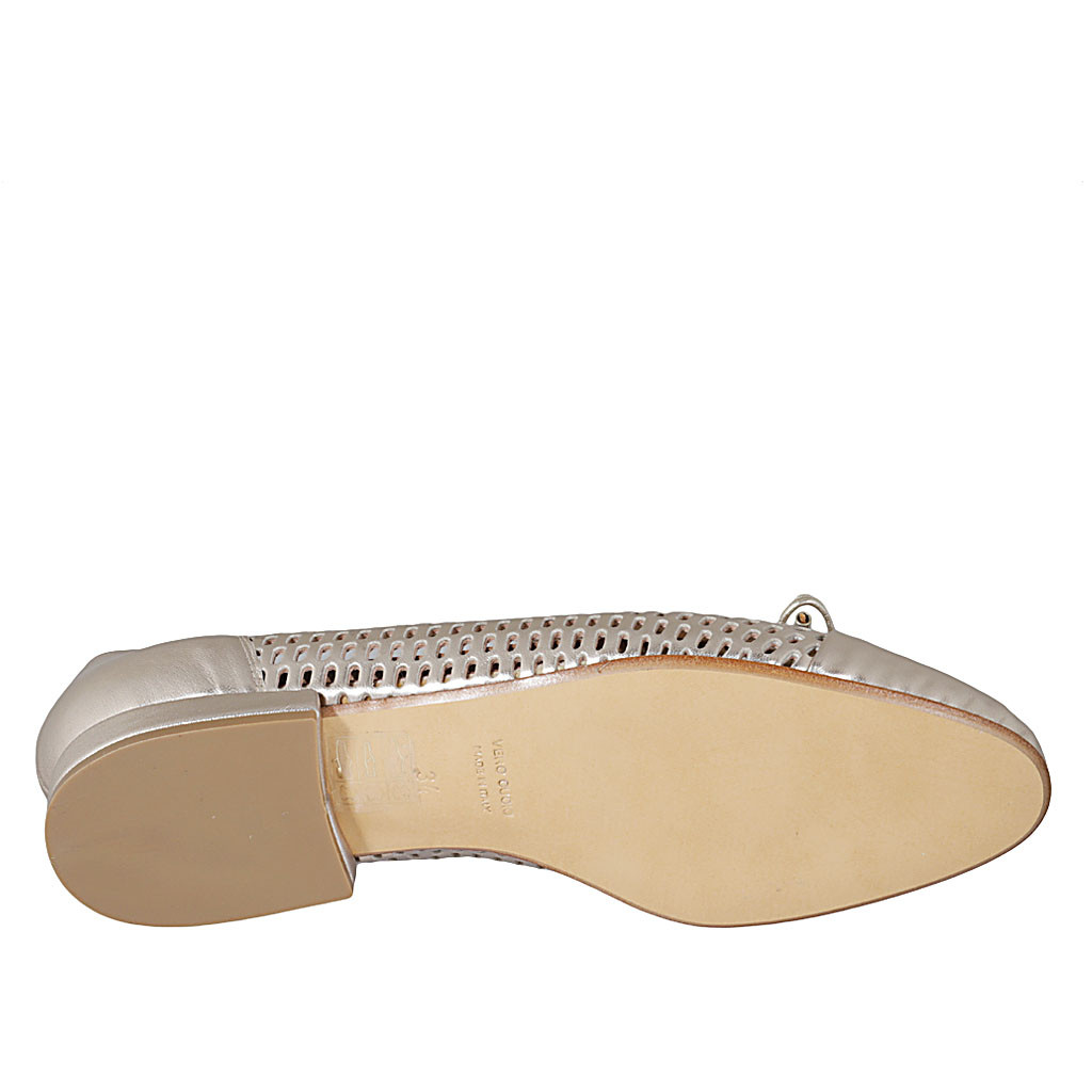 Zapato de salon con moño para mujer en piel y piel perforada laminada platino tacon 2 - Tallas disponibles:  33