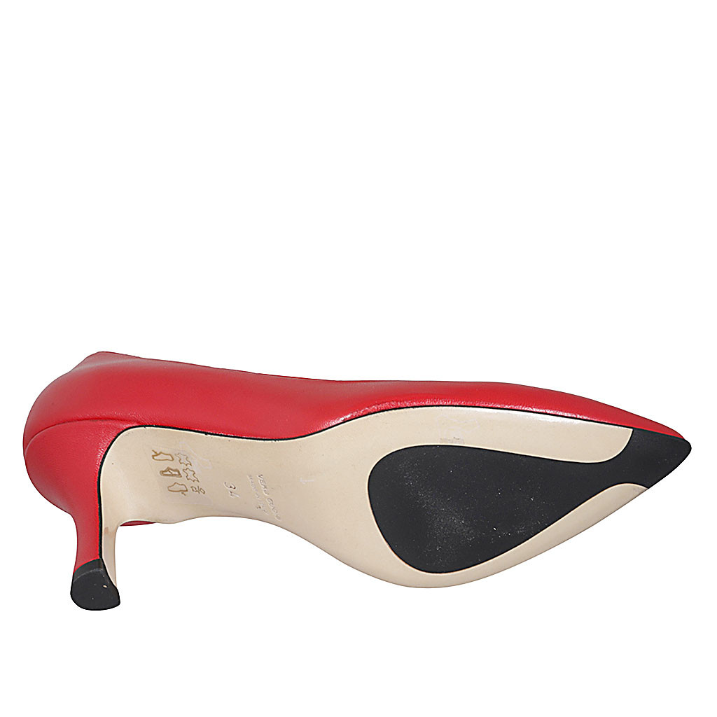 Zapato de salon puntiagudo para mujer en piel roja tacon 7