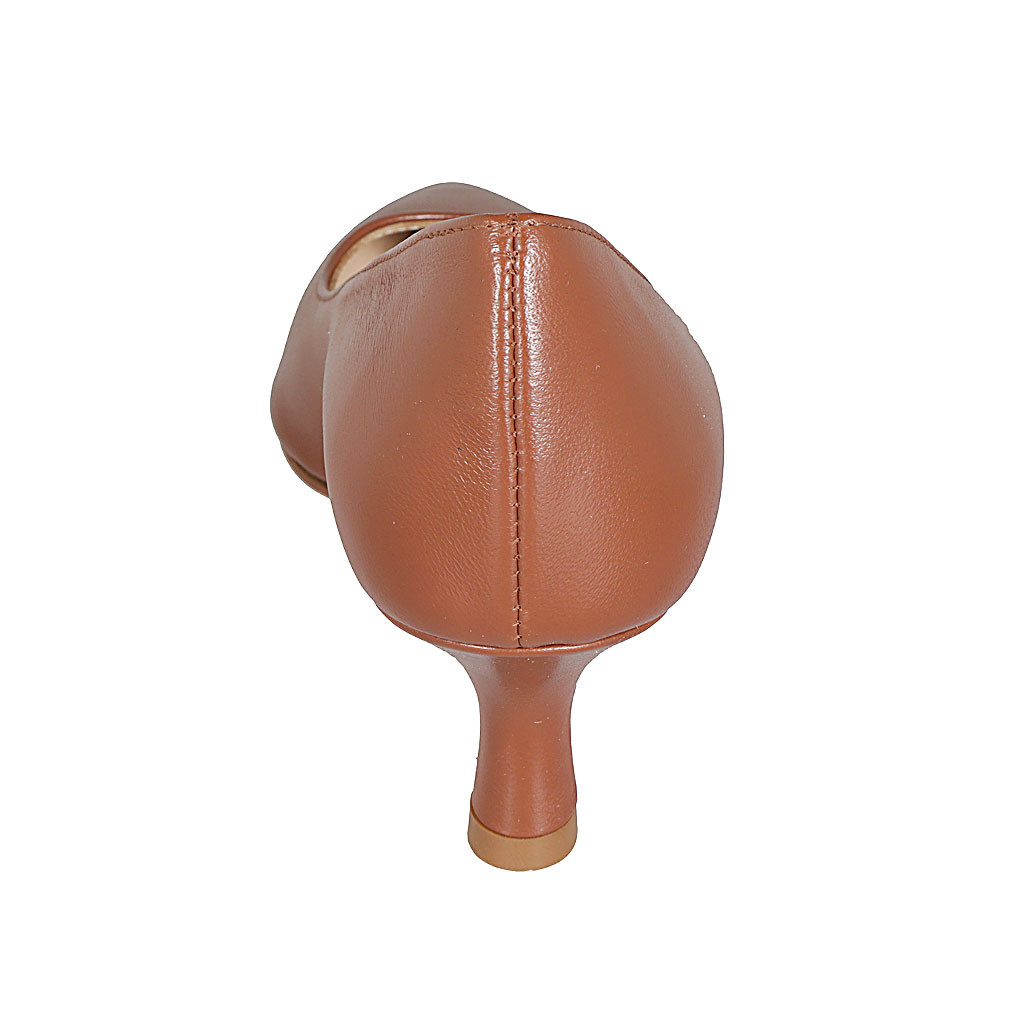 Zapato de salon puntiagudo en piel cognac para mujer tacon 5 - Tallas disponibles:  42