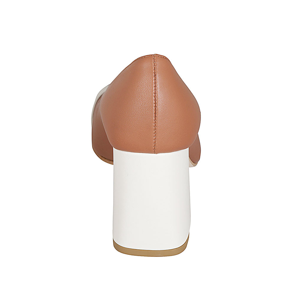 Zapato de salon para mujer en piel cognac y beis claro tacon 8 - Tallas disponibles:  34, 42