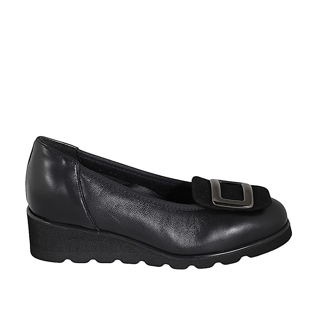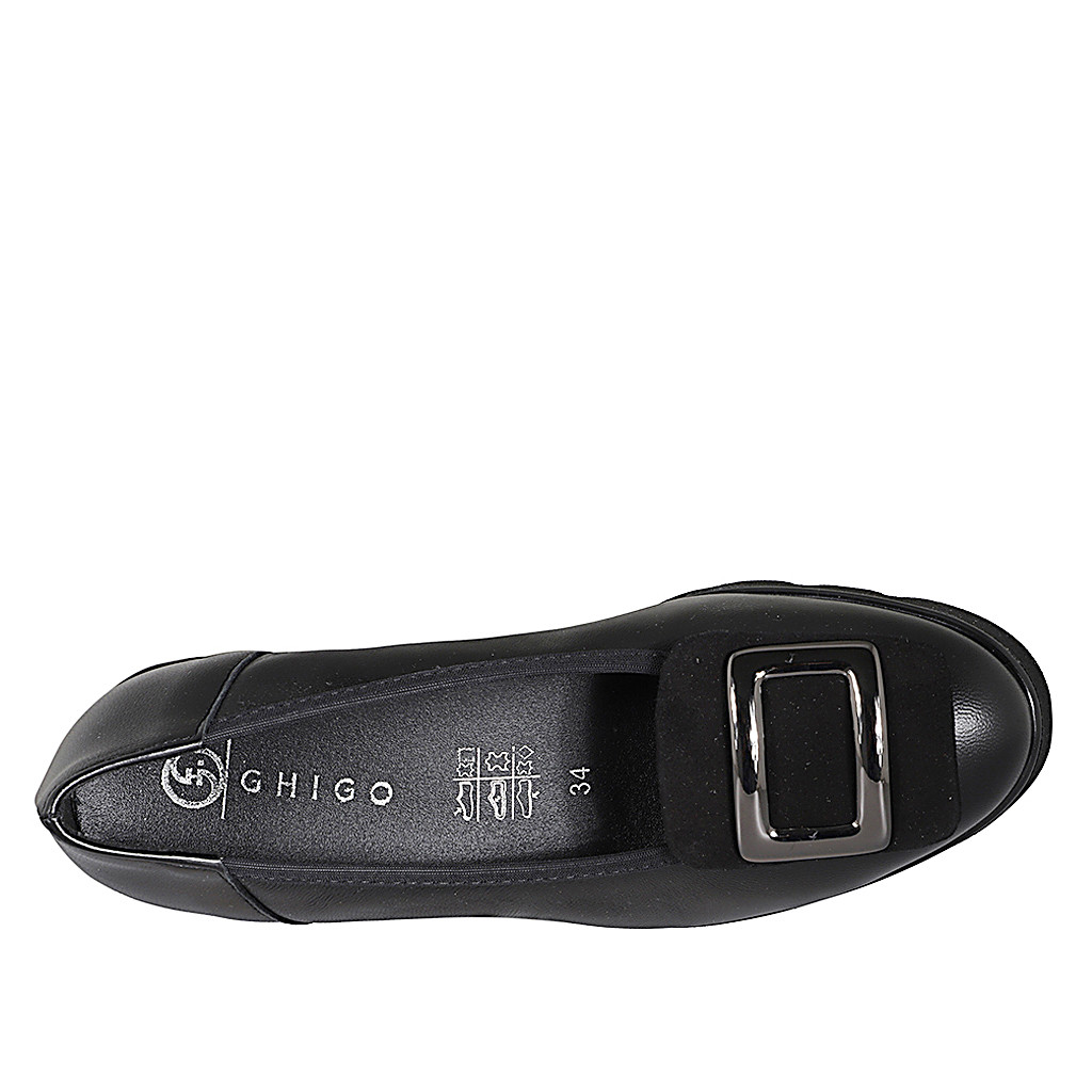 Botines a punta para mujer en gamuza negra con cremallera interior y punta en charol negro tacon 2