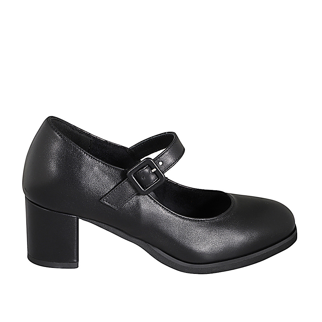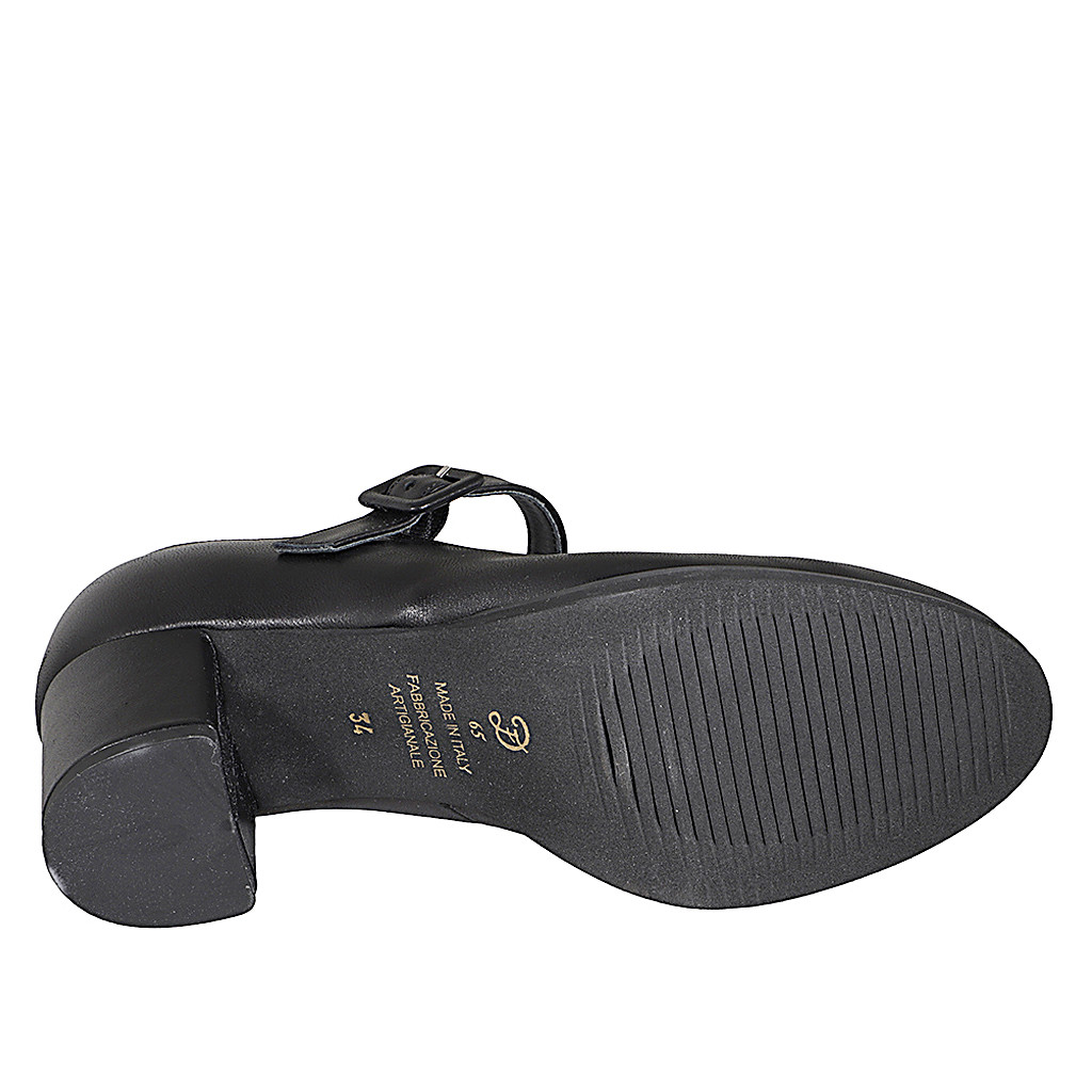 Mary Jane para mujer con cinturon y plantilla extraíble en piel negra tacon 5 - Tallas disponibles:  32, 35, 42, 43, 45