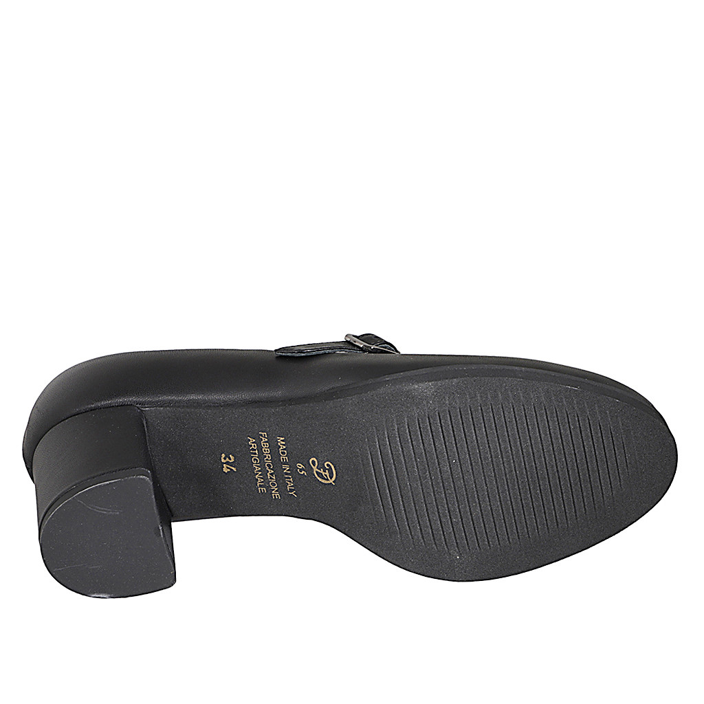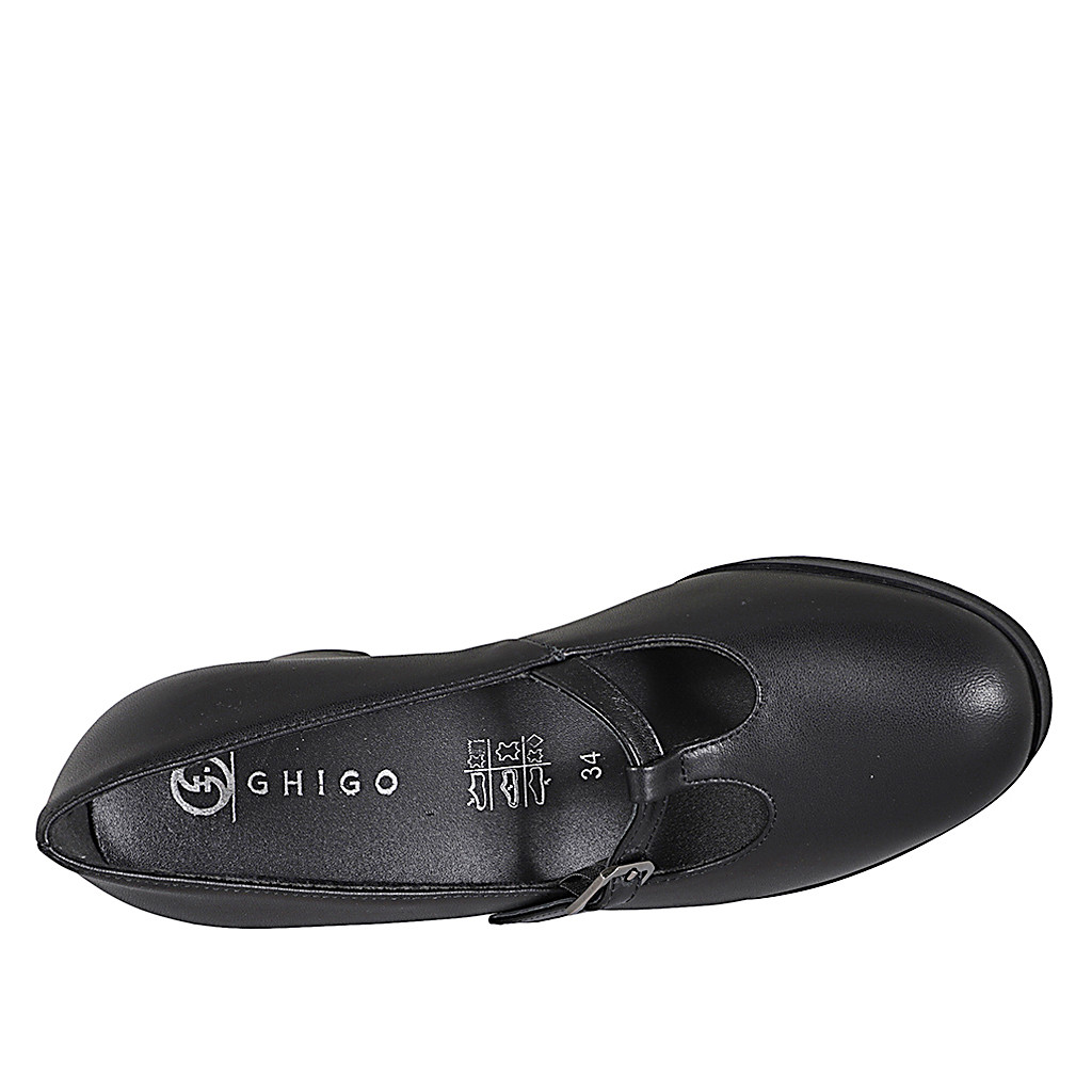 Mary Jane para mujer con cinturon en T y plantilla extraíble en piel negra tacon 5 - Tallas disponibles:  32, 33, 43, 45, 46