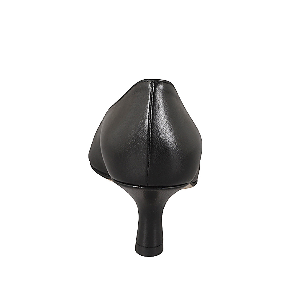 Zapato a punta para mujer con plantilla en espuma viscoelástica en piel de color negro con tacón 5