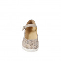 Zapato de salon para mujer con plantilla extraible y cinturón en piel imprida color beis y gamuza beis con cuña 6