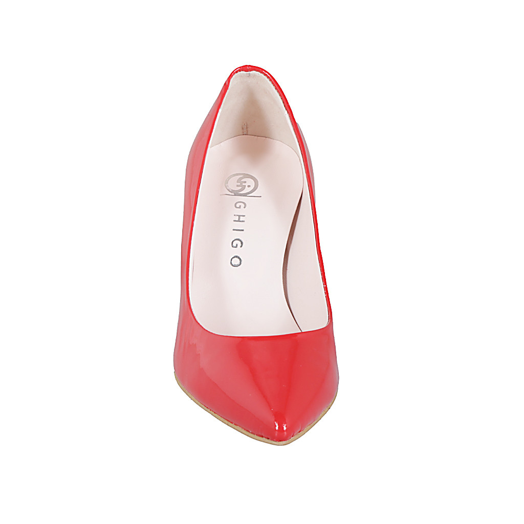 Zapato de salon a punta para mujer en charol rojo con tacon 7