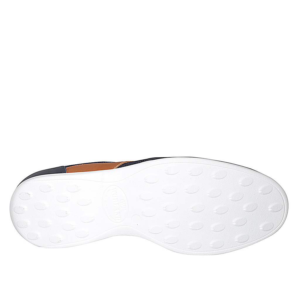 Zapato deportivo con cordones para hombre en piel azul y cognac y tejido azul - Tallas disponibles:  51