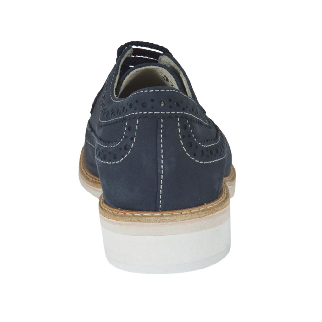 Zapato de sport derby con cordones y decoraciones brogue para hombre en piel nubuk azul - Tallas disponibles:  37, 47