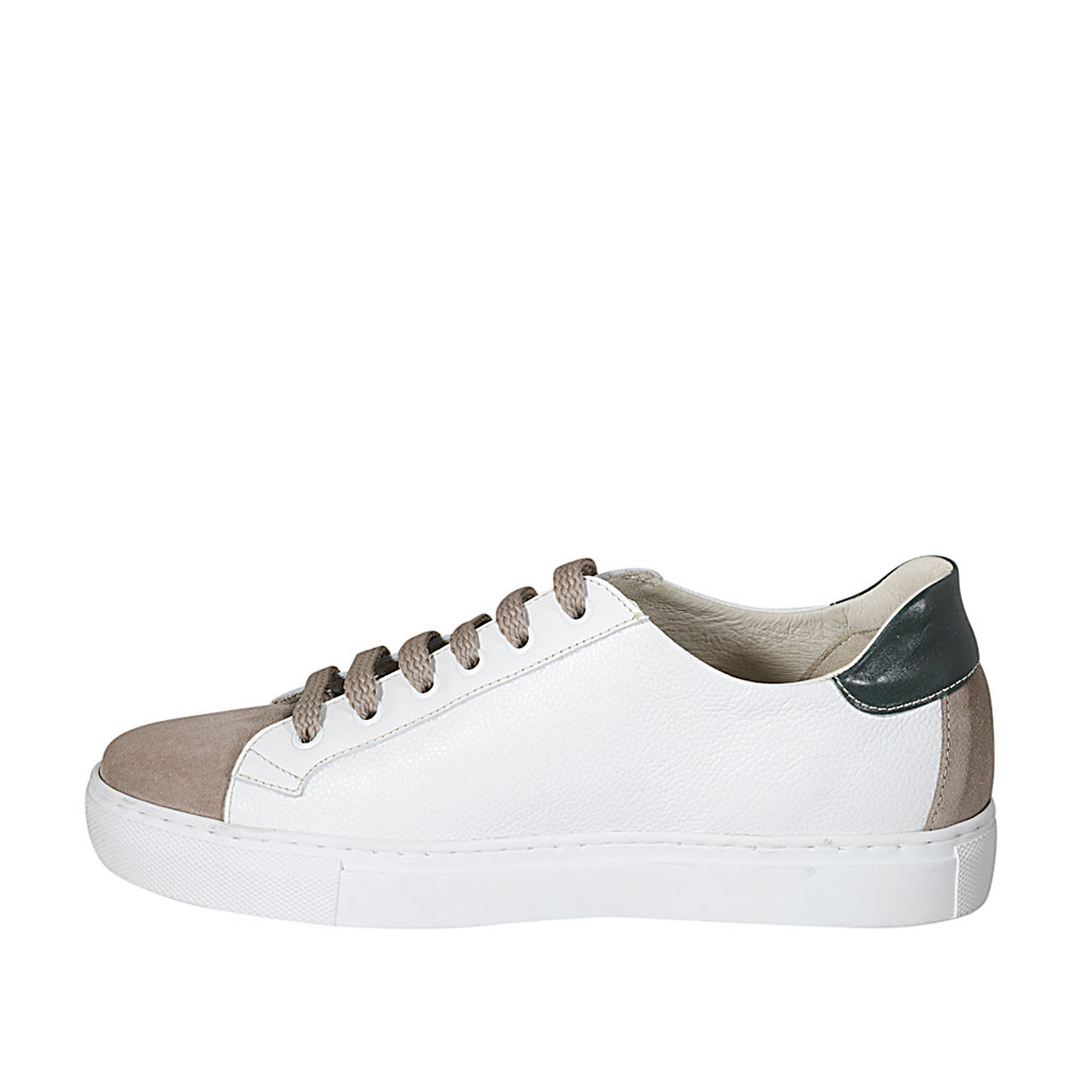 Zapato de sport para hombre con cordones y plantilla extraible en piel blanca y negra