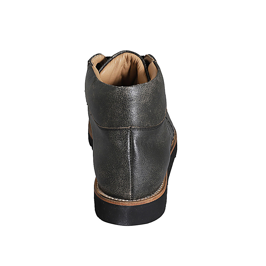 Zapato deportivo alto al tobillo con cordones para hombre en piel gris pardo y blanco