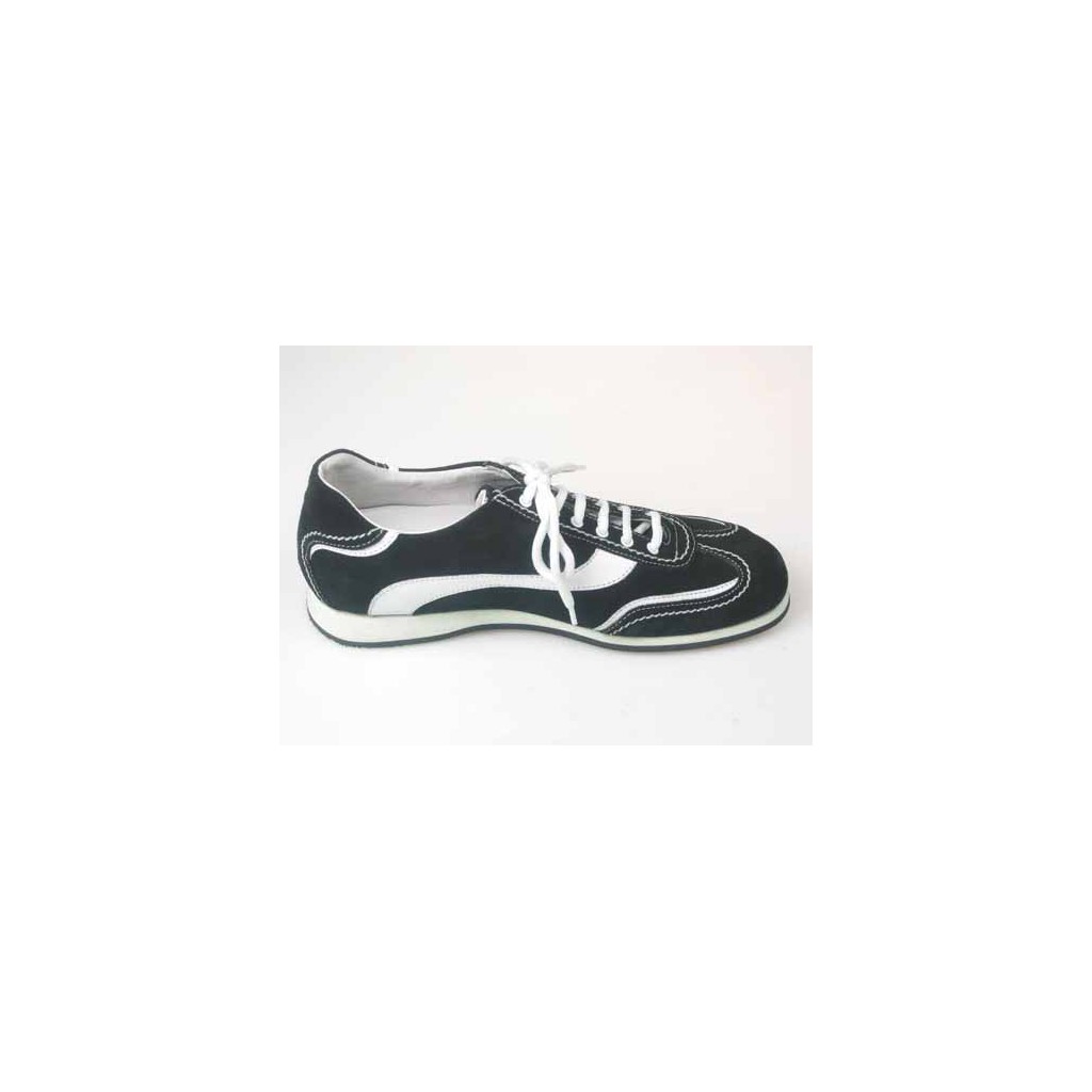 Zapato deportivo con cordones para hombre en gamuza negra y piel blanca
