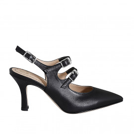 Zapato destalonado para mujer en piel cognac con accesorio tacon 8 - Tallas disponibles:  42