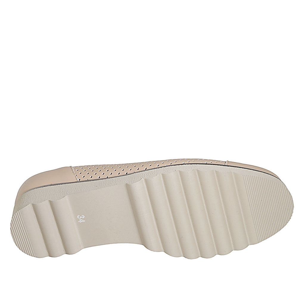 Ballerine pour femmes en cuir perforé rose clair avec bout droit talon compensé 3 - Pointures disponibles:  34, 44, 45
