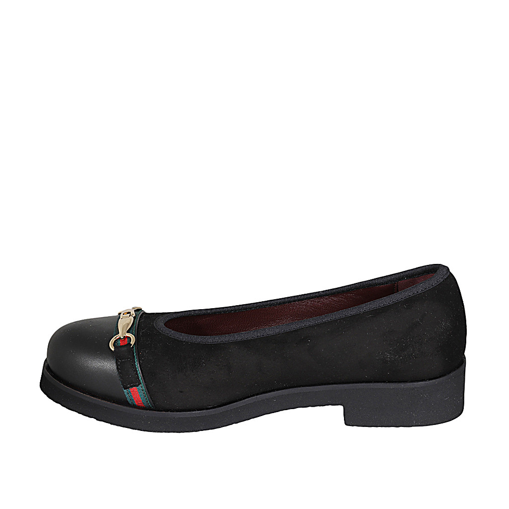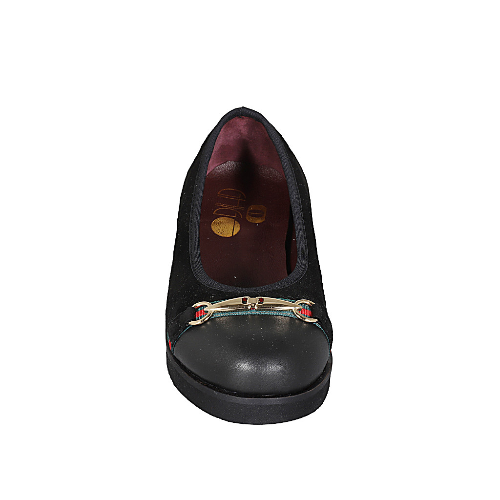 Ballerine avec accessoire et bout droit pour femmes en daim et cuir noir talon 3 - Pointures disponibles:  32, 33