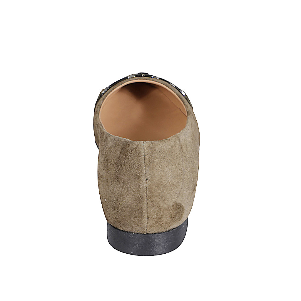 Ballerine pour femmes à bout pointu avec metallique accessoire en daim vert olive talon 2 - Pointures disponibles:  32, 34, 35, 42, 43, 44, 46