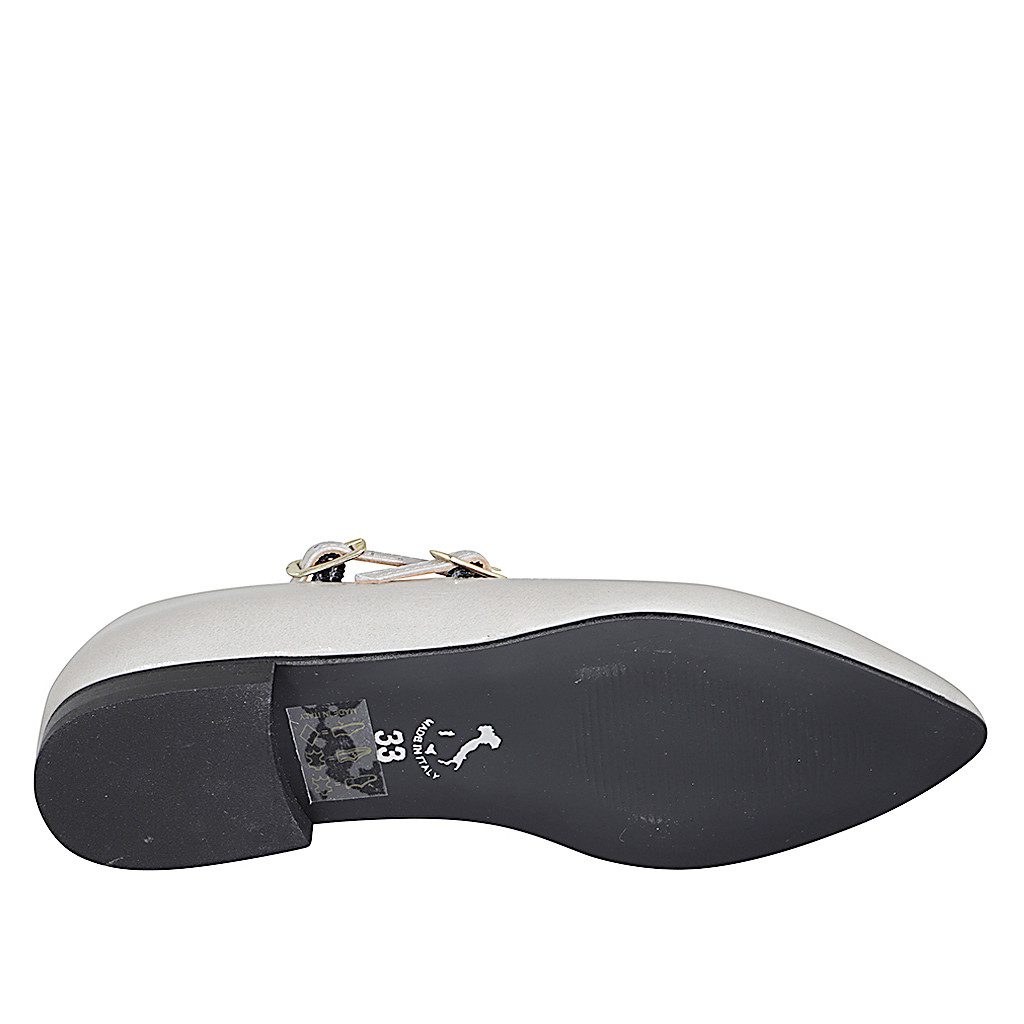 Mary Jane Ballerine à bout pointu avec double courroies en cuir verni gris clair talon 2 - Pointures disponibles:  33, 35, 42, 43, 44, 45, 46