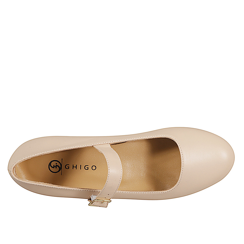 Ballerine Mary Jane avec bout à pointu en cuir nude, talon 2