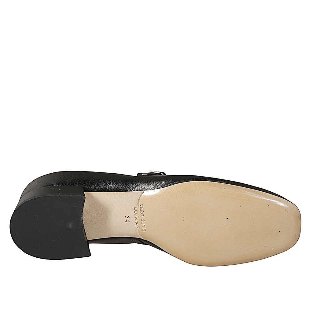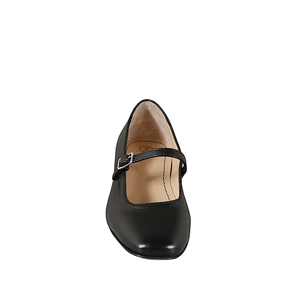 Ballerines pour femmes avec courroie en T, en cuir blanc et bout droit en cuir beige avec talon 3
