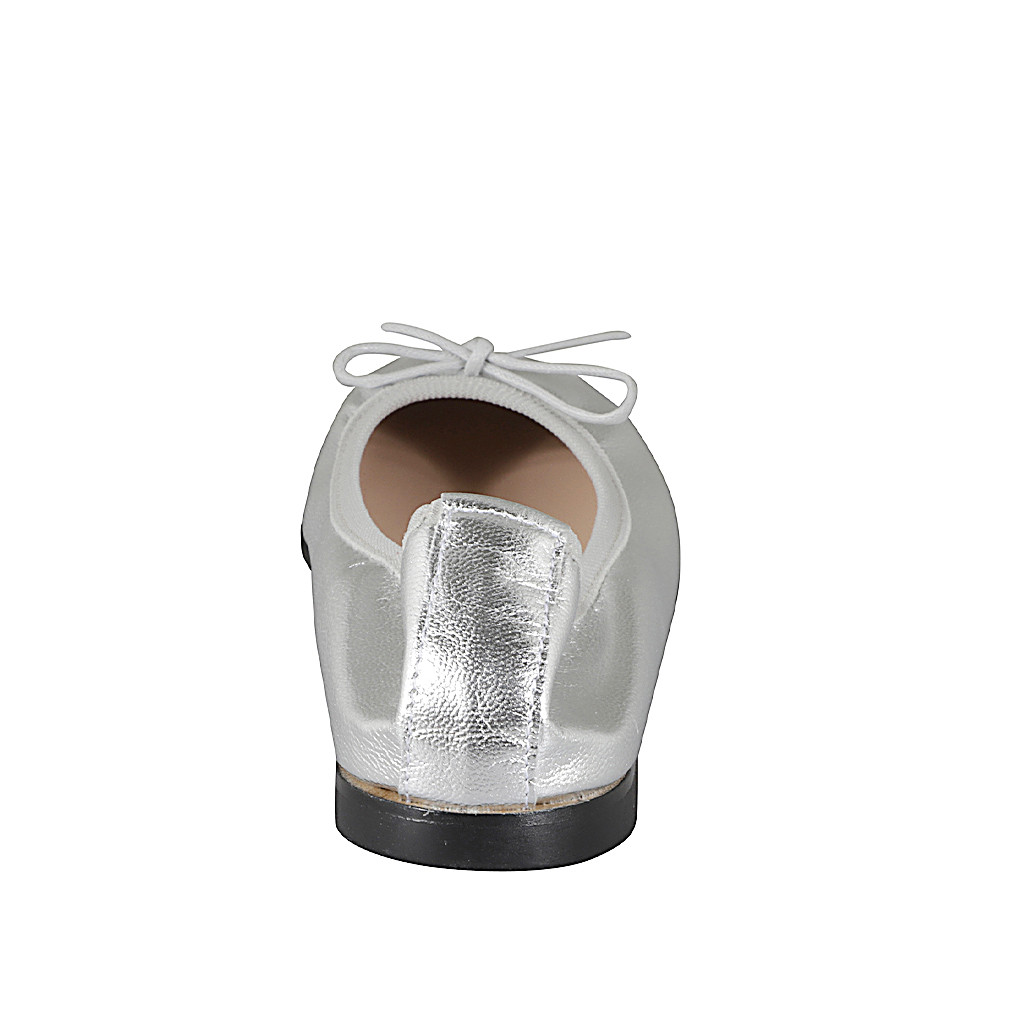 Femmes ballerines chaussures avec noeud, en cuir lamé argent et sans doublure et avec talon 1
