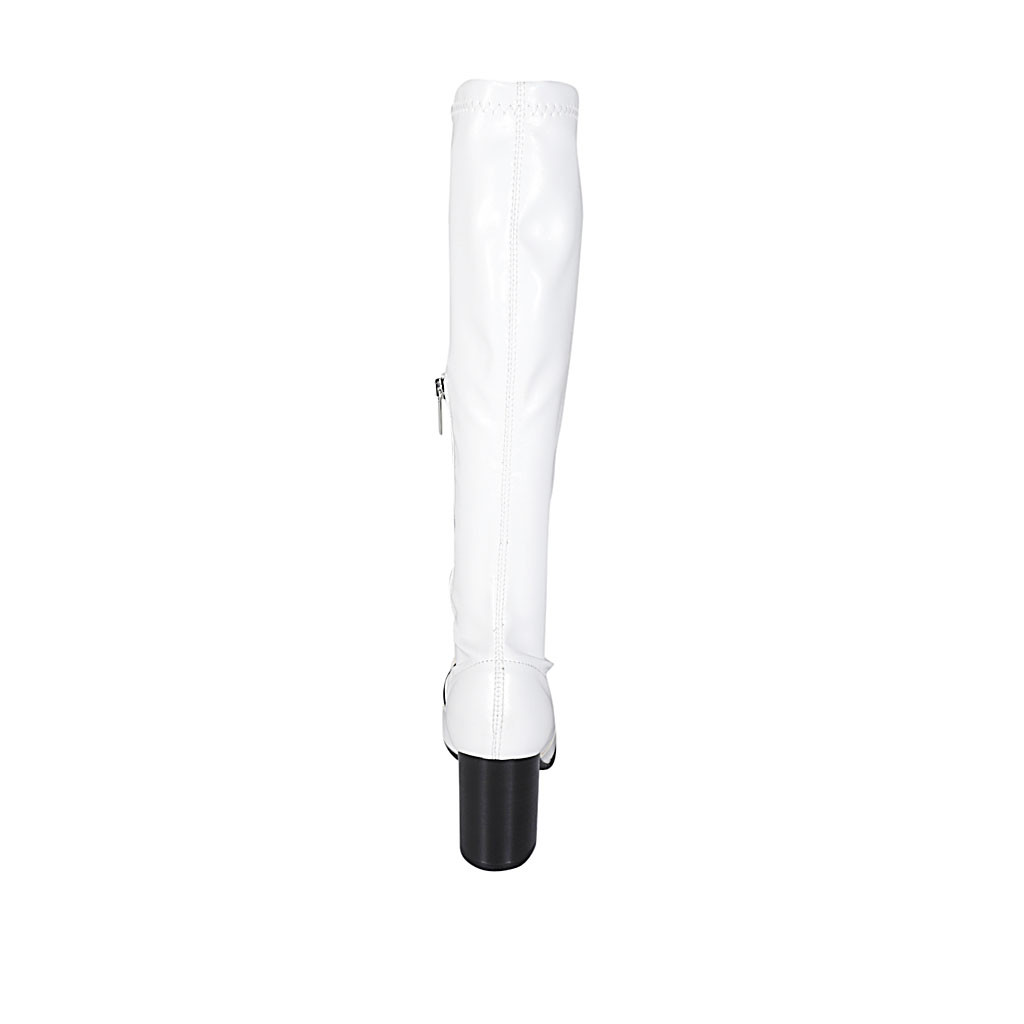 Bottes pour femmes en cuir verni et matériau élastique blanc avec demi fermeture éclair talon 8 - Pointures disponibles:  42