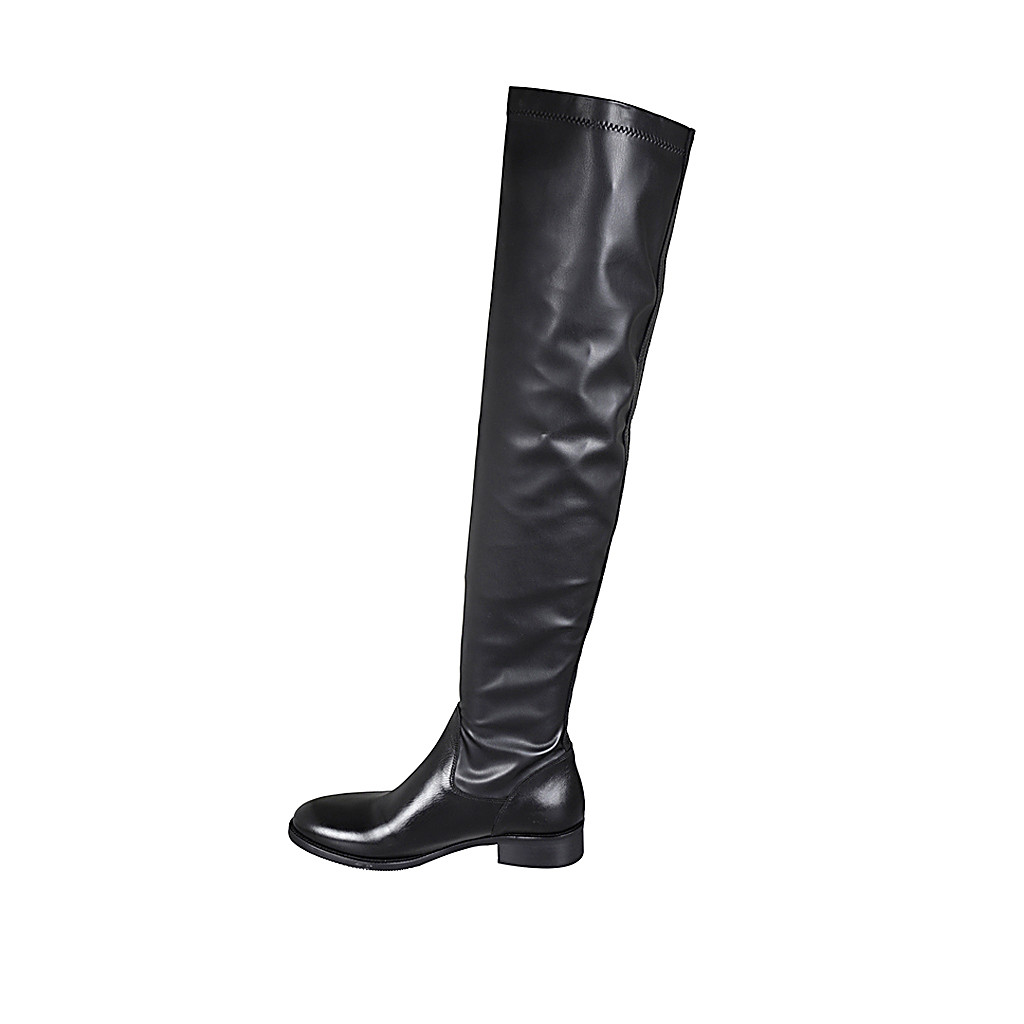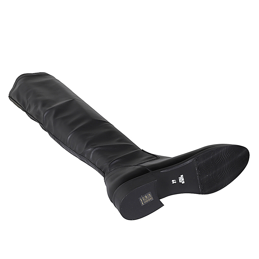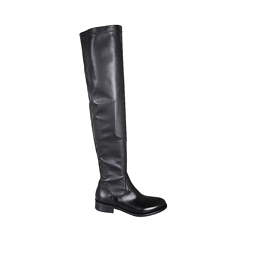 Bottines hautes avec élastiques et bout droit pour femmes en cuir noir talon 3