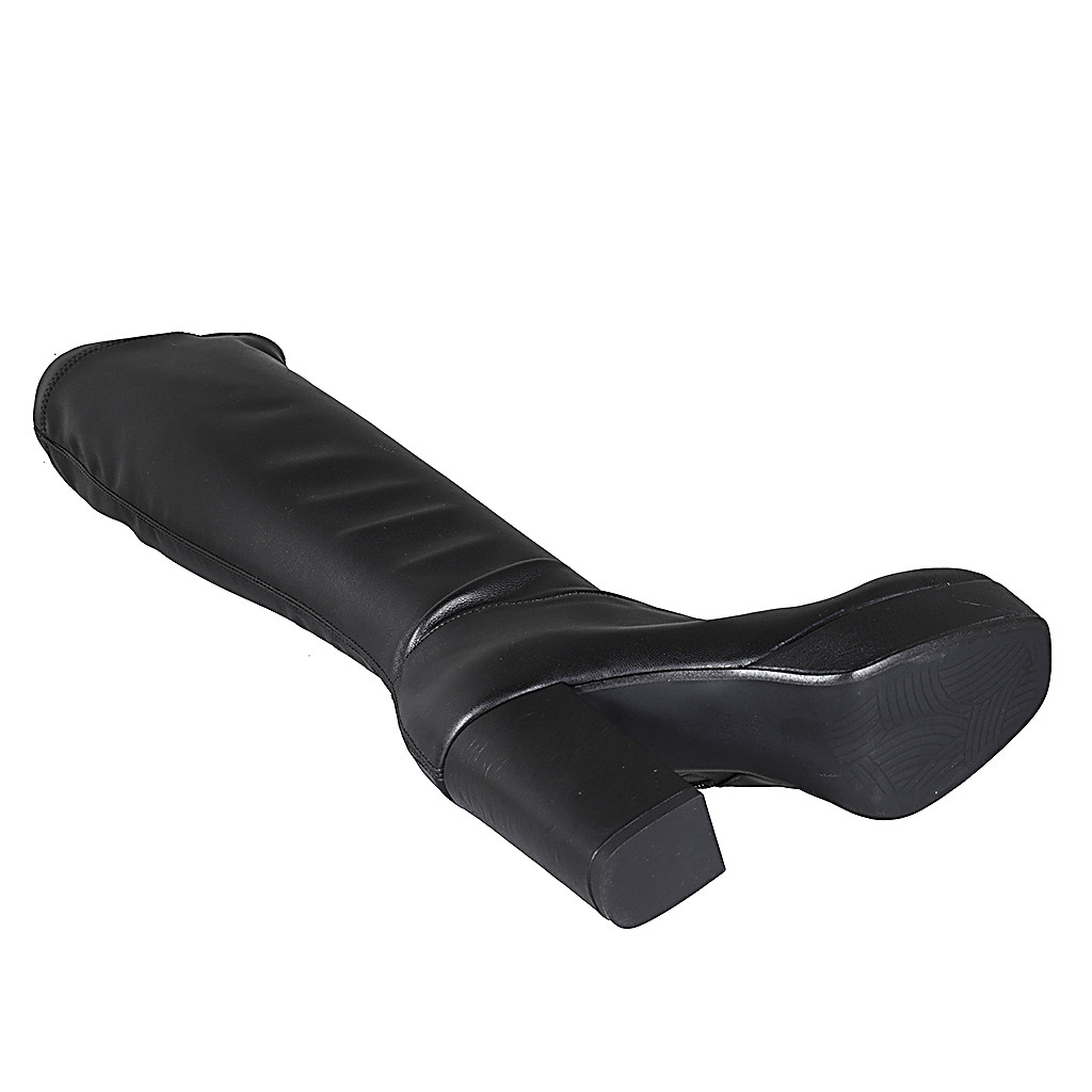 Sandale pour femmes en daim noir, cuir lamé bronze et tissu resillé talon 8