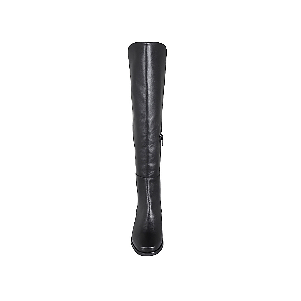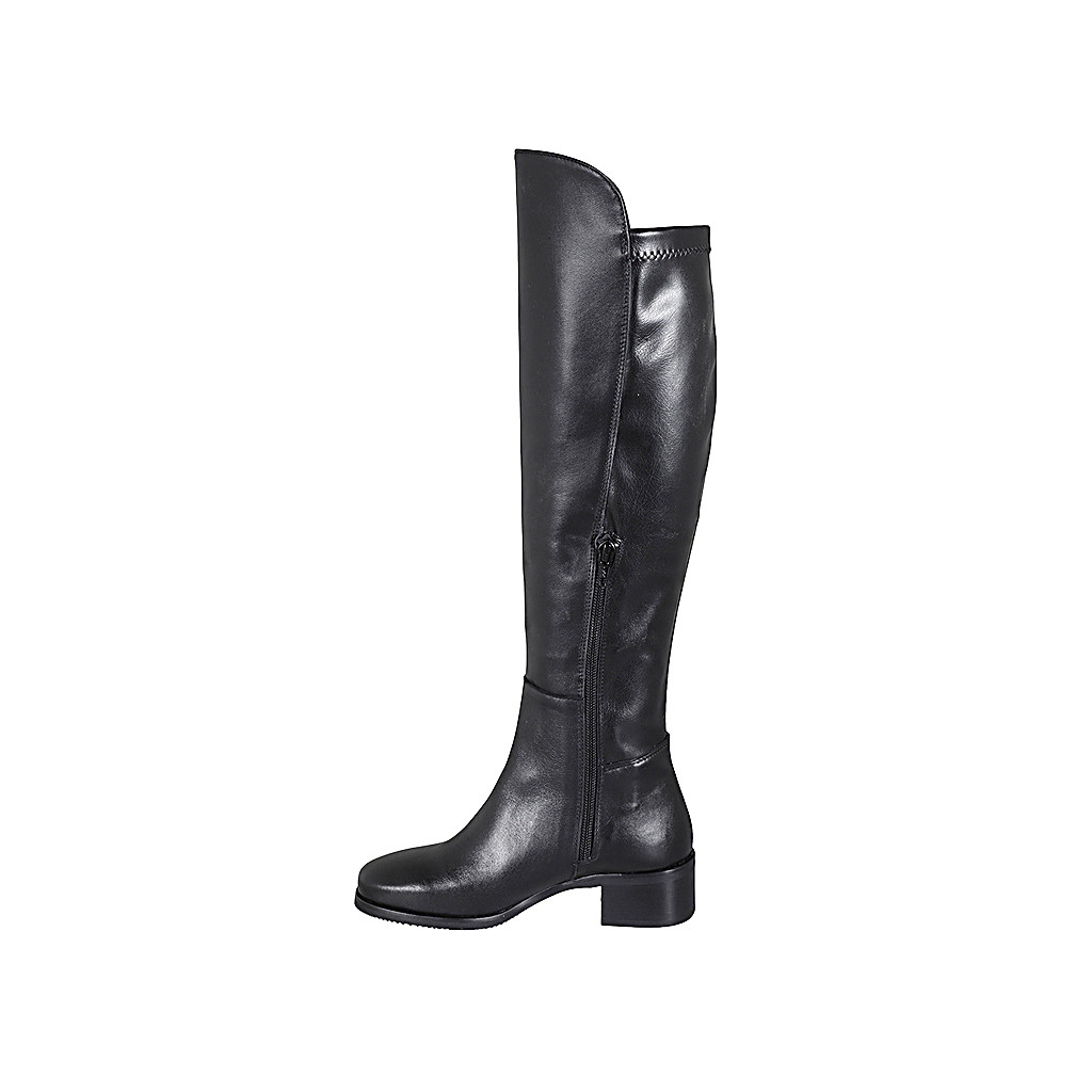 Bottes pour femmes avec demi fermeture éclair et bout carré en cuir et materiau elastique noir talon 4 - Pointures disponibles:  32