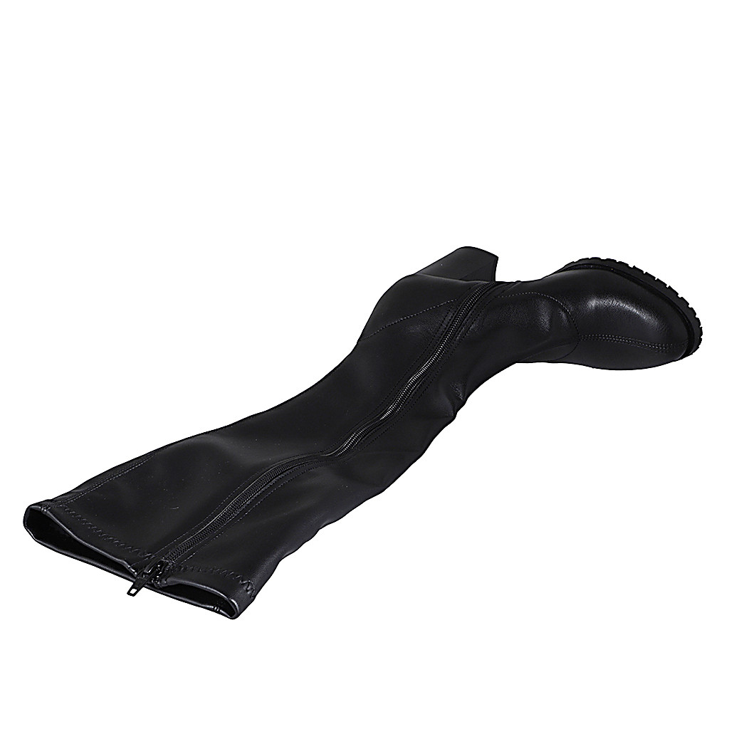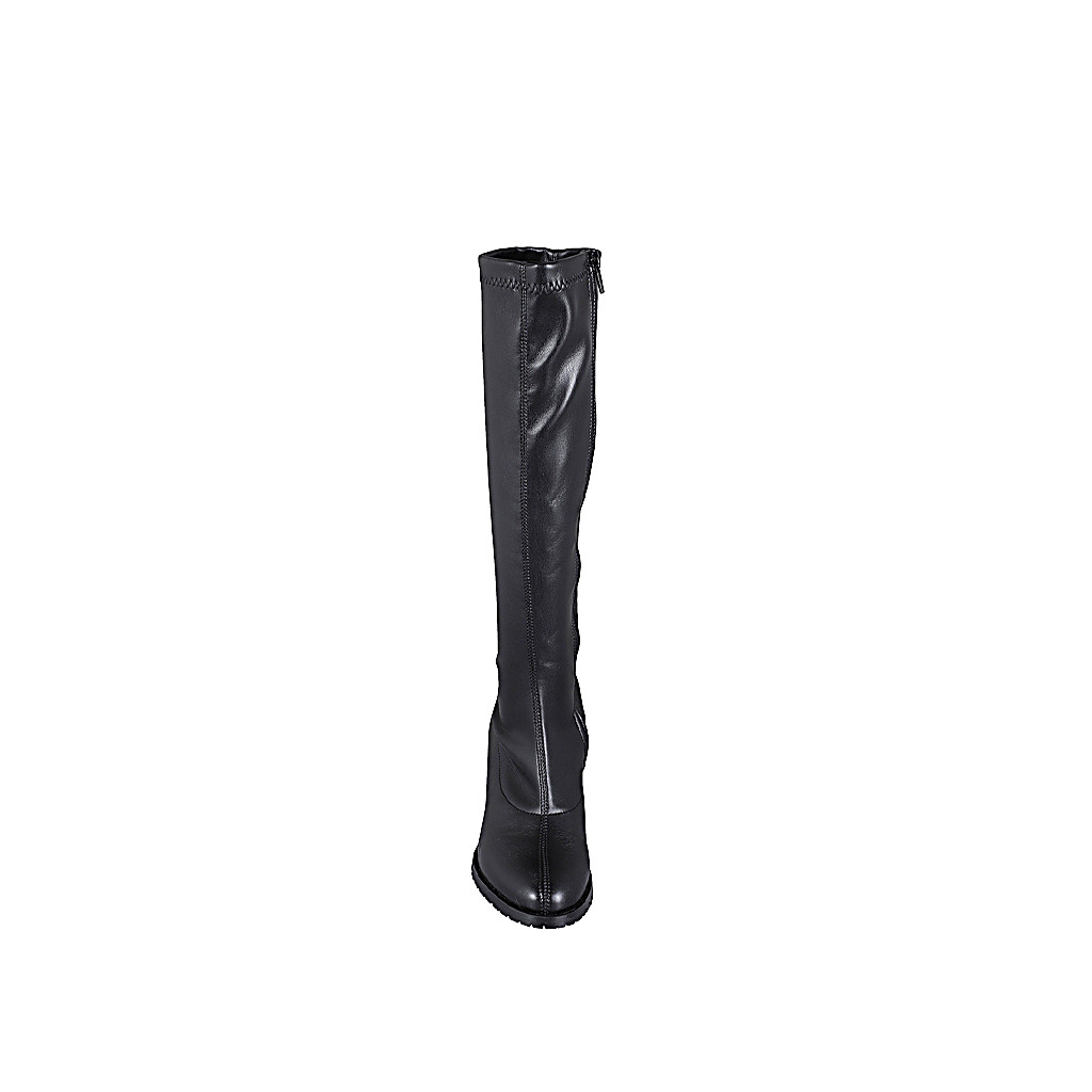 Bottes pour femmes avec fermeture éclair et bout rondu en cuir stretch noir talon 7 - Pointures disponibles:  35, 44