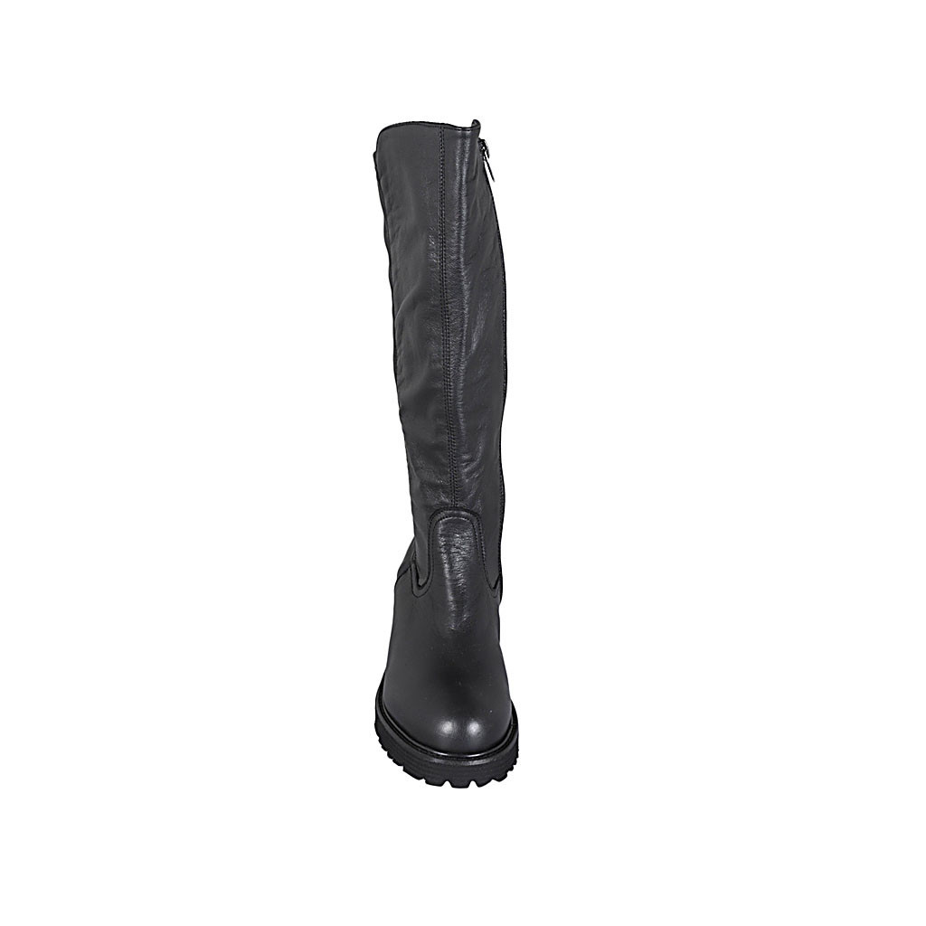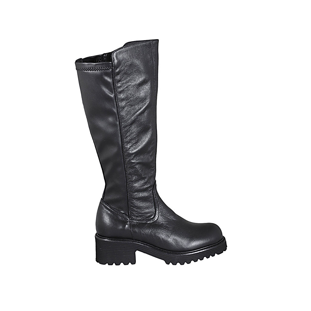 Bottes pour femmes avec fermeture éclair en cuir et tissu elastique noir talon 5 - Pointures disponibles:  32, 33, 35, 42, 43, 44, 45