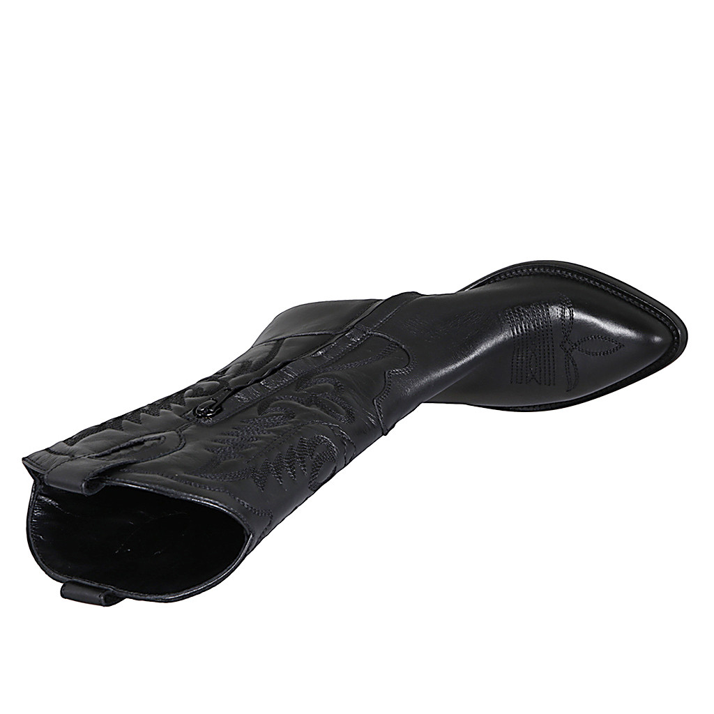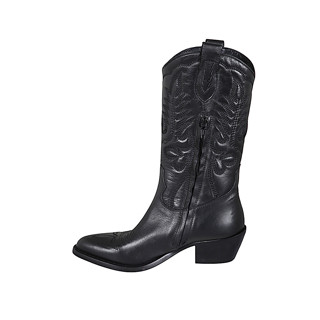 Bottes Texan pour femmes avec demi fermeture éclair et broderie en cuir noir talon 5 - Pointures disponibles:  32, 33, 46