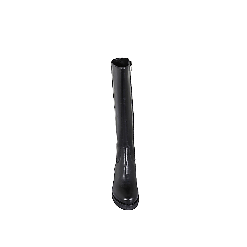 Chaussure à lacets avec fermeture éclair en cuir, daim et cuir verni noir talon compensé 4