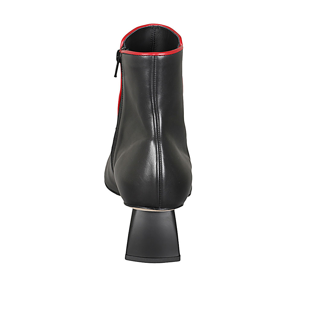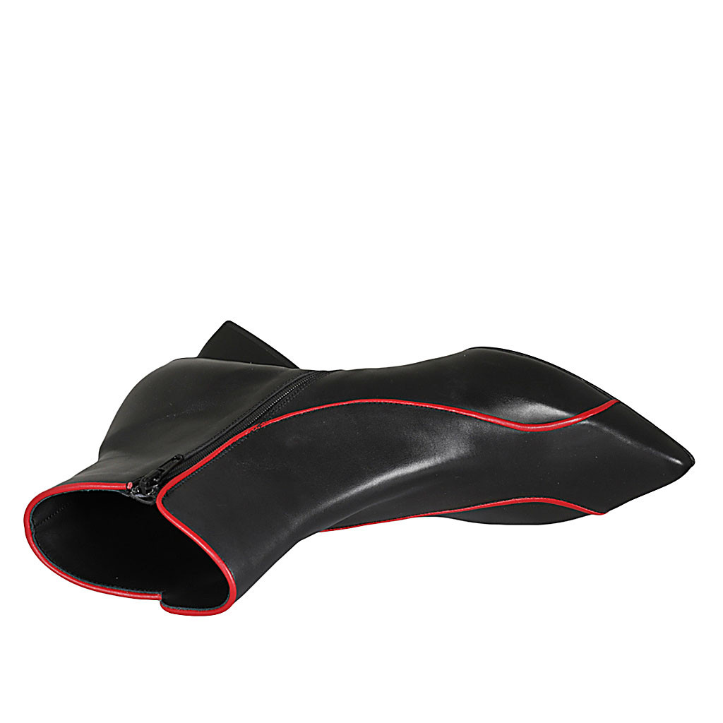 Bottine à bout pointu pour femmes avec fermeture éclair en cuir noir et rouge talon 6 - Pointures disponibles:  42