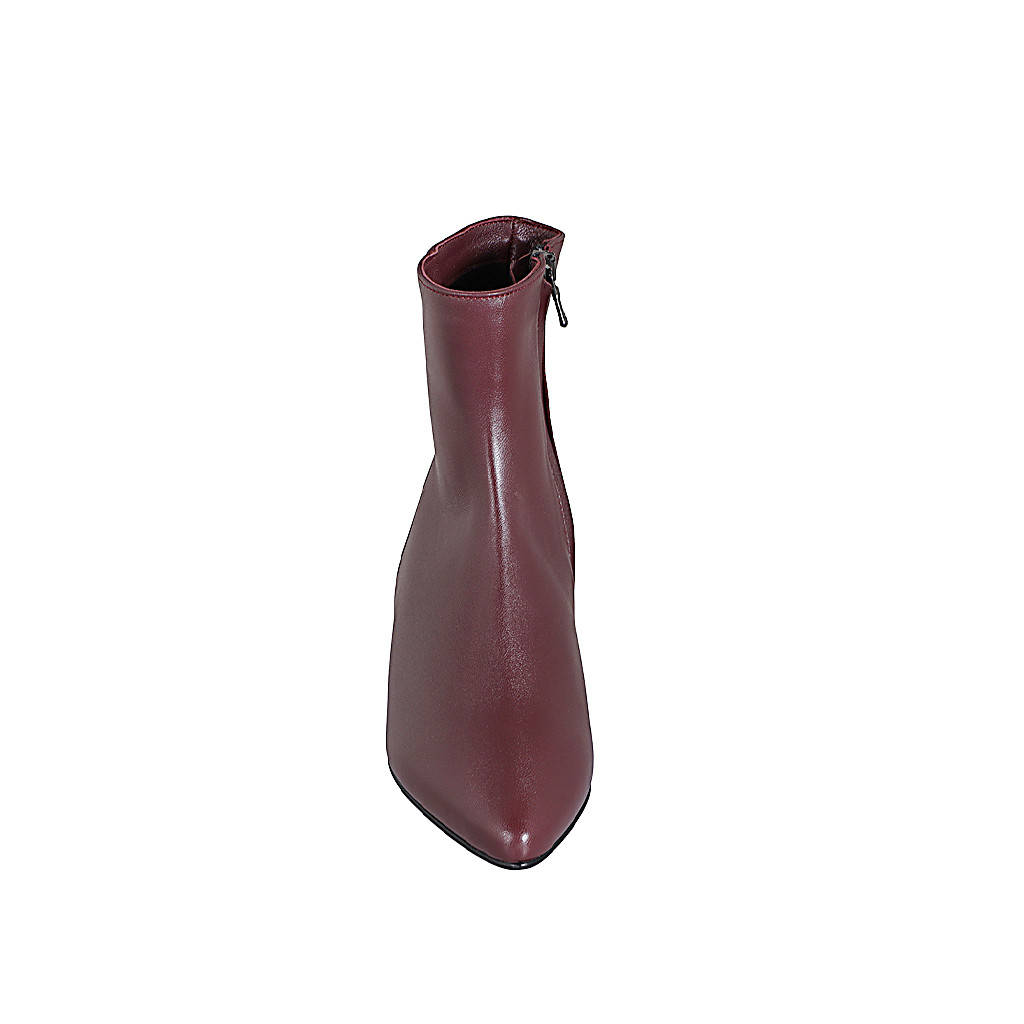 Bottines pour femmes à bout pointu avec zip intérieur en cuir bordeaux talon 2 - Pointures disponibles:  35, 44