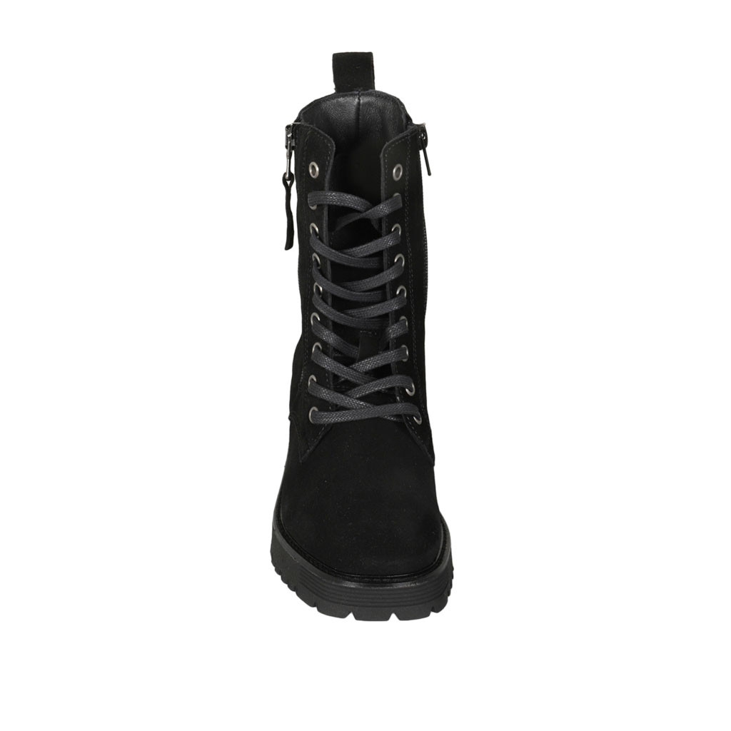 Bottines pour femmes avec fermeture éclair en daim et matériau élastique noir talon 8