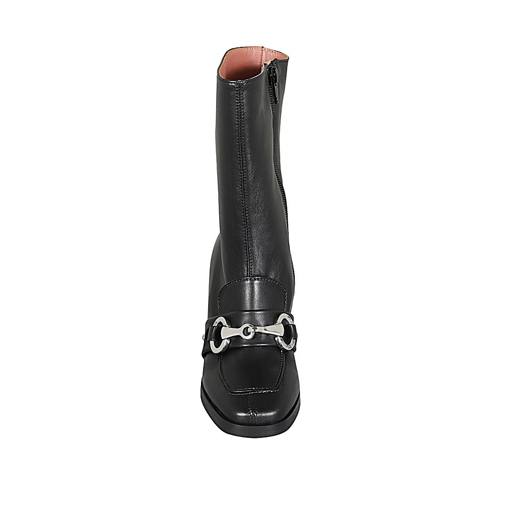 Bottes pour femmes avec demi fermeture éclair en cuir et cuir perforé beige talon 6