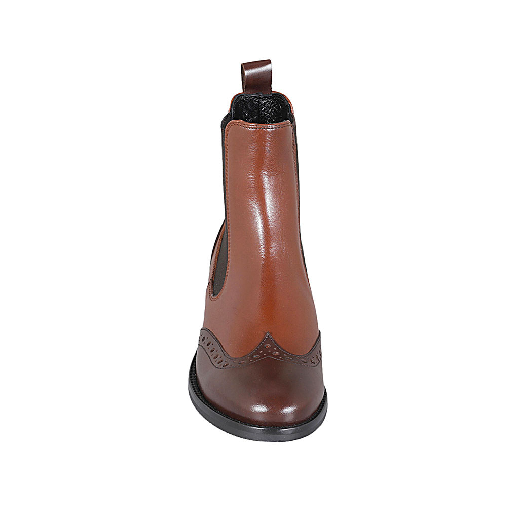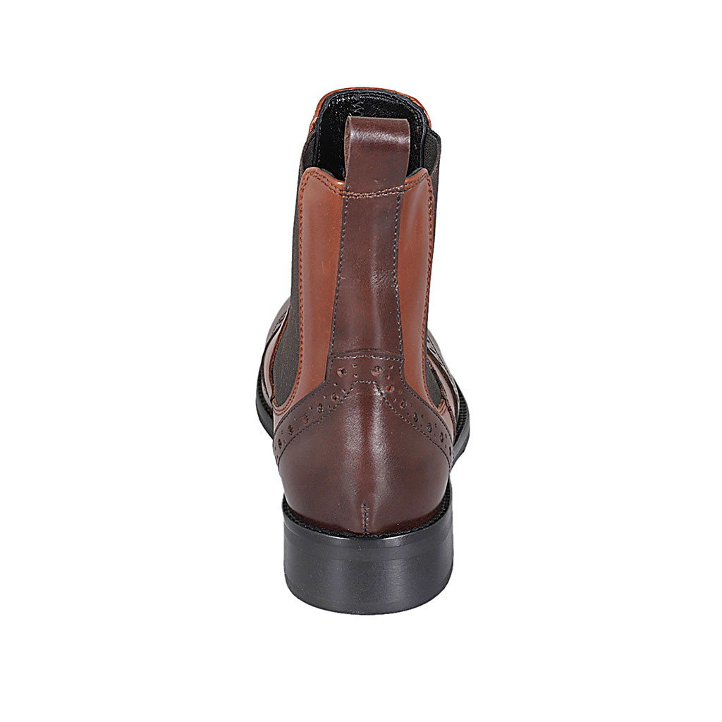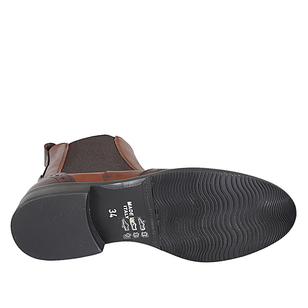 Bottines pour femmes avec élastiques et bout golf en cuir cognac et marron talon 3 - Pointures disponibles:  32