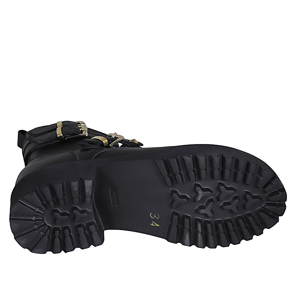 Bottines pour femmes avec lacets, boucles et fermeture éclair en cuir noir talon 4 - Pointures disponibles:  33