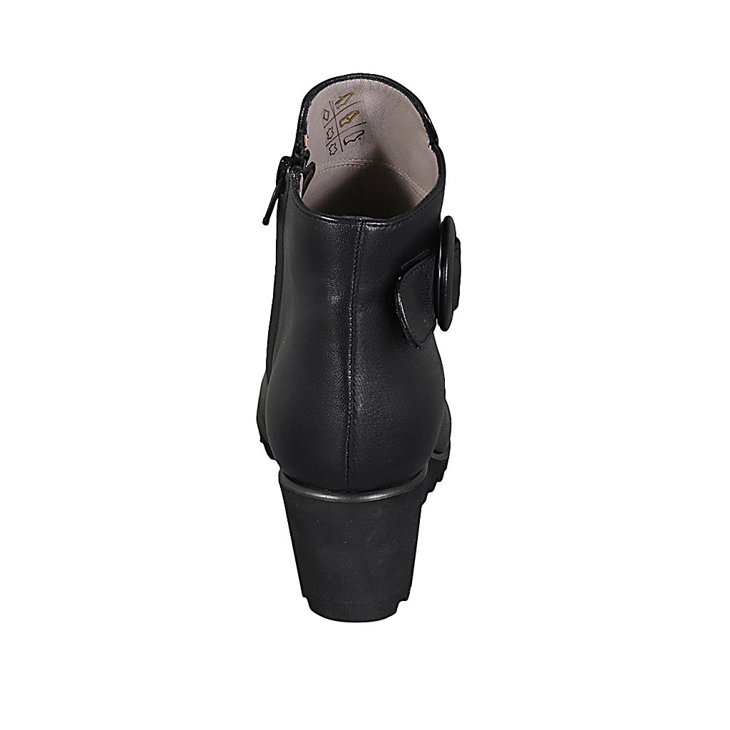 Bottines pour femmes avec boucle et fermeture éclair en cuir noir talon compensé 6 - Pointures disponibles:  42
