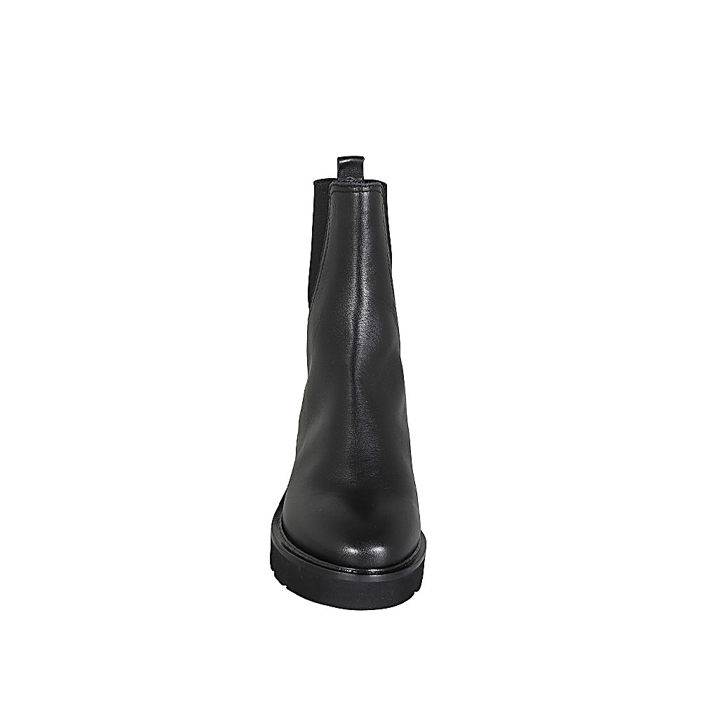 Bottines pour femmes en cuir cognac avec élastiques et plateforme talon 8